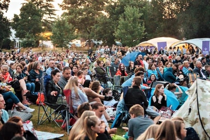 Friday night cinema in Sanders Park including street food and beverages.